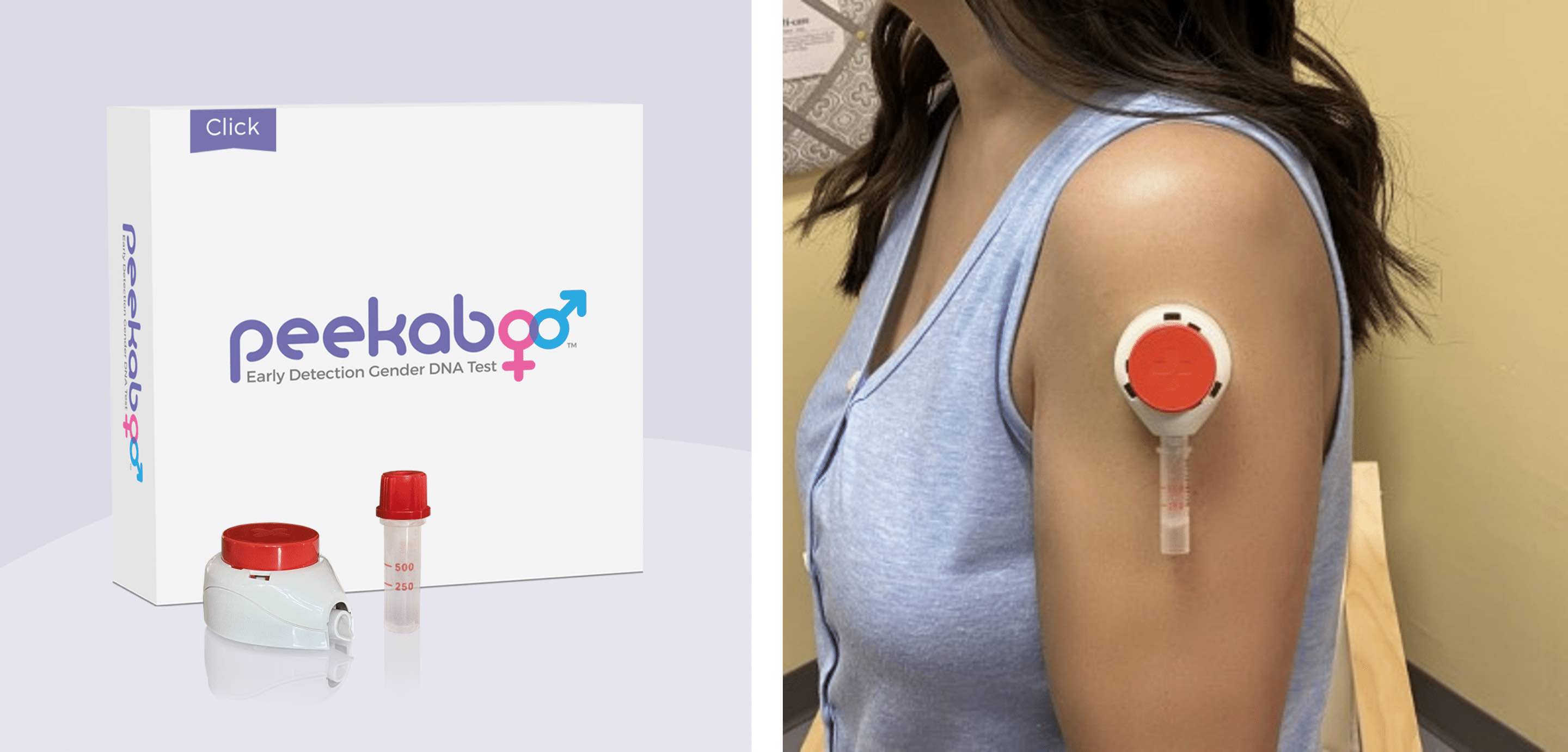 The PeekabooTM test enables expecting parents to discover their baby’s gender very early in pregnancy with 99.5% accuracy from a simple blood sample from the mother1. PeekabooTM Click will make obtaining a test sample more convenient and accessible for expectant mothers, utilizing a virtually pain-free at-home collection device that collects capillary blood from the mother’s arm as early as six weeks into pregnancy. Customers then send the sample back to DDC’s laboratory, where it is analyzed and accurate results are returned to the customer as soon as the same day.